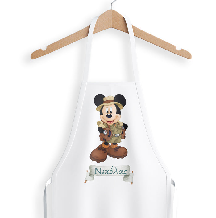Προσωποποιημένη ποδιά με θέμα Mickey Safari, για να την φορά ο νονός ή η νονά του μωρού σας στη βάπτιση του!