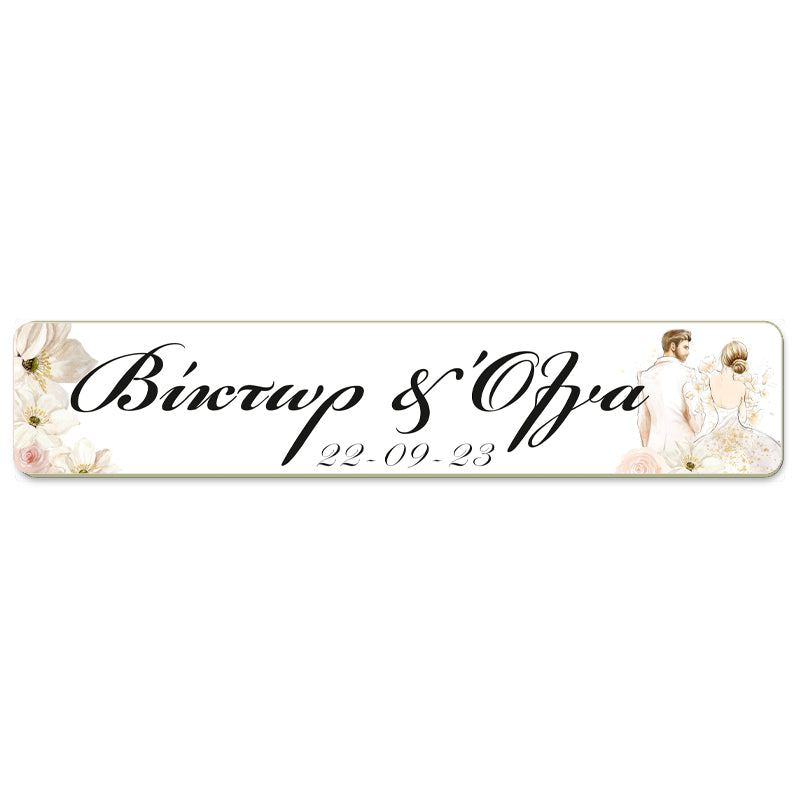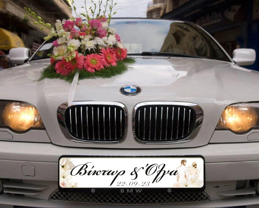 Πινακίδες αυτοκινήτου γάμου με τα ονόματα του ζευγαριού και σχέδιο που παραπέμπει σε παραμύθι. Μια πρωτότυπη ιδέα για να στολίσετε το αυτοκίνητο του ζευγαριού για το γάμο!