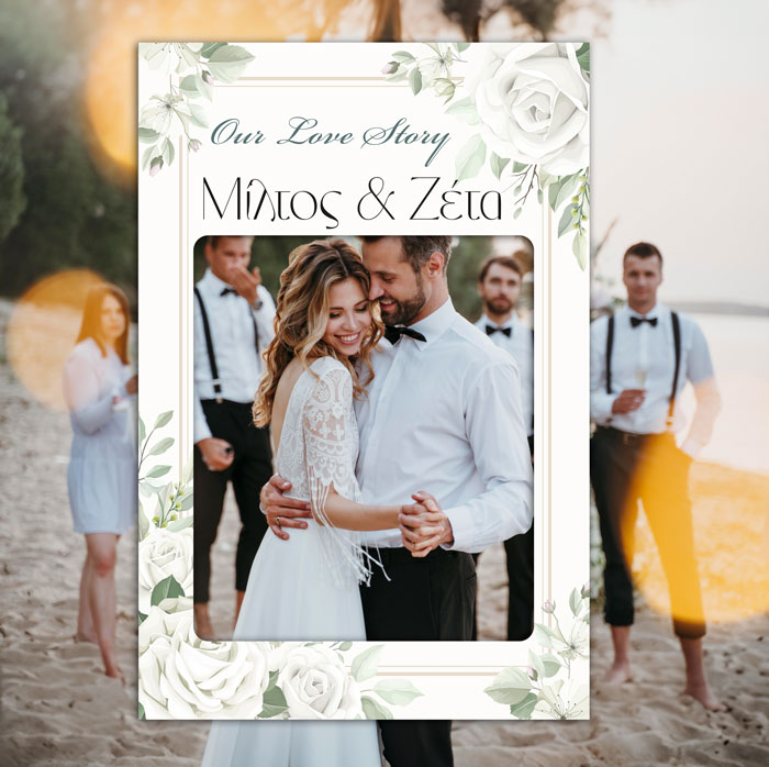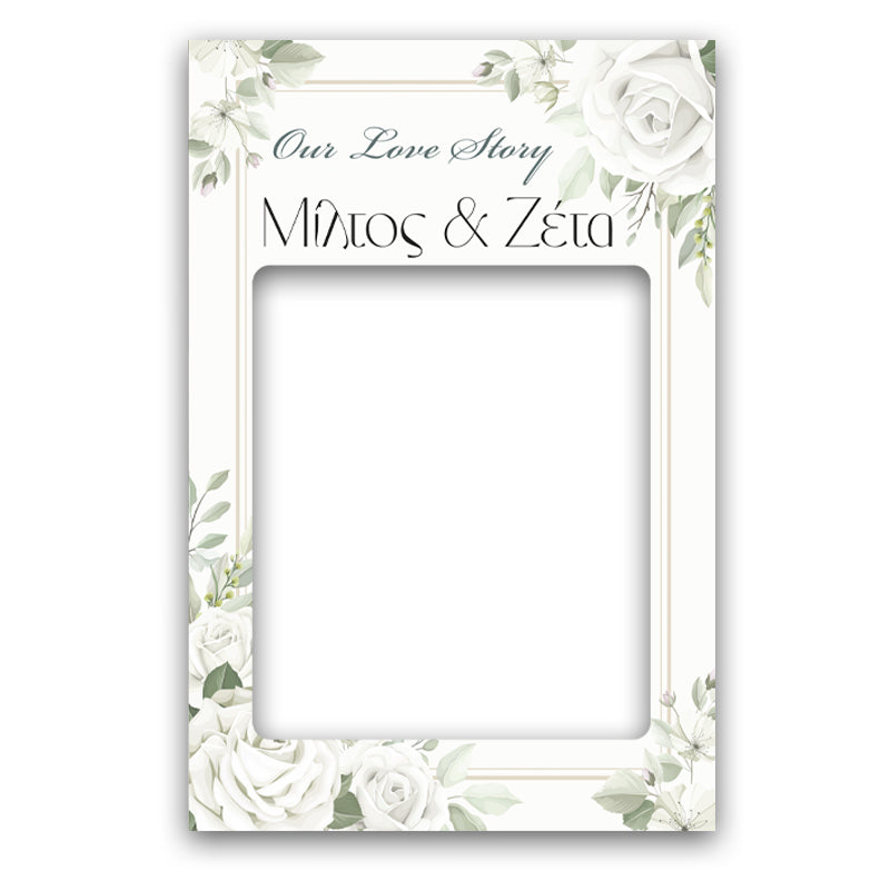 Κάδρο Photo Booth με σχέδιο Λευκά Τριαντάφυλλα, μια όμορφη ιδέα για να διακοσμήσετε το χώρο του γάμου και ένα μοναδικό φόντο για τις φωτογραφίες σας!