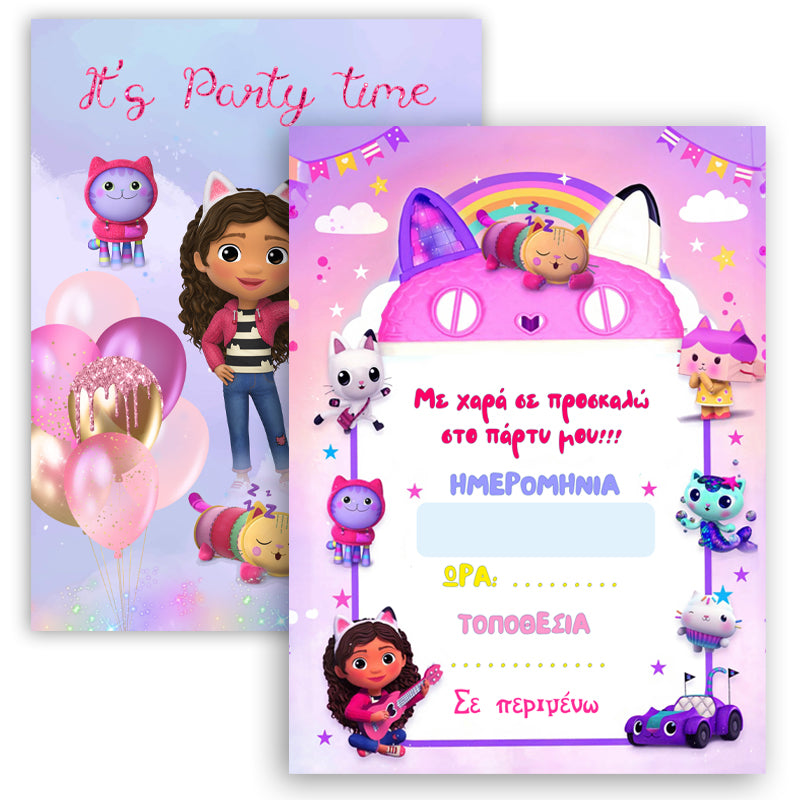Προσκλήσεις για το πάρτυ γενεθλίων με θέμα Το Κουκλόσπιτο της Γκάμπι!