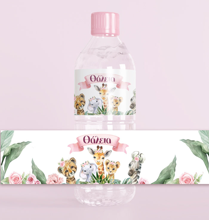 Διακοσμήστε τα μπουκαλάκια νερού με ετικέτες σε θέμα Ζώα της Ζούγκλας Κορίτσι που μπορούν να αναγράφουν το όνομα του παιδιού.