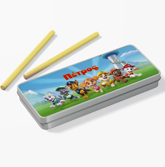 Μεταλλική κασετίνα με τα κουταβάκια Paw Patrol και τυπωμένο το όνομα! Βάλε σ'αυτή τα αγαπημένα σου σχολικά αντικείμενα ή δώρισέ την σε μια φίλη σου και ξεχωρίστε στην τάξη!