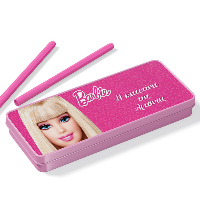 Μεταλλική κασετίνα με σχέδιο Barbie και τυπωμένο το όνομα! Βάλε σ'αυτή τα αγαπημένα σου σχολικά αντικείμενα ή δώρισέ την σε μια φίλη σου και ξεχωρίστε στην τάξη!