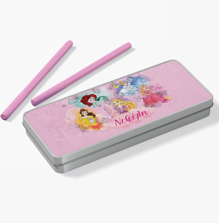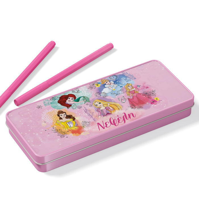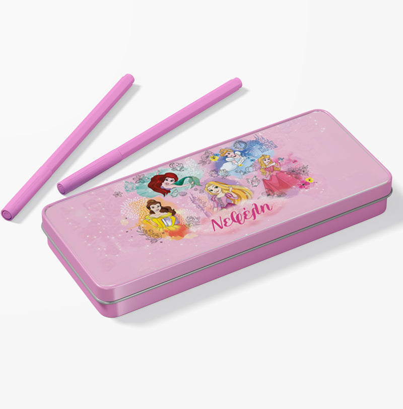 Μεταλλική κασετίνα με σχέδιο Πριγκίπισσες και τυπωμένο το όνομα! Βάλε σ'αυτή τα αγαπημένα σου σχολικά αντικείμενα ή δώρισέ την σε μια φίλη σου και ξεχωρίστε στην τάξη!