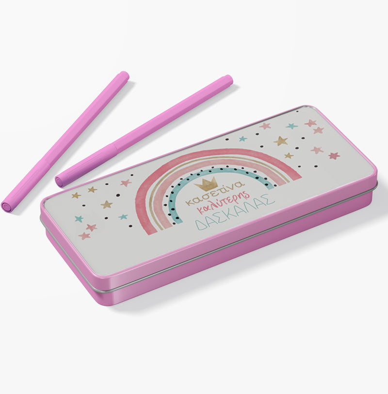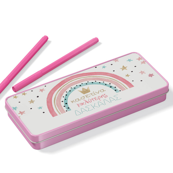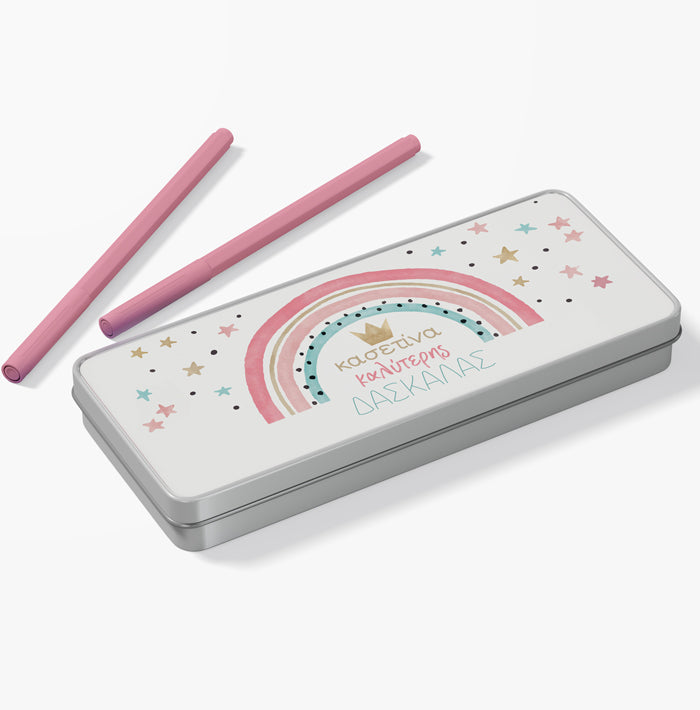 Μεταλλική κασετίνα με σχέδιο Ουράνιο Τόξο και τυπωμένο μήνυμα, για να την χαρίσεις στην αγαπημένη σου δασκάλα!