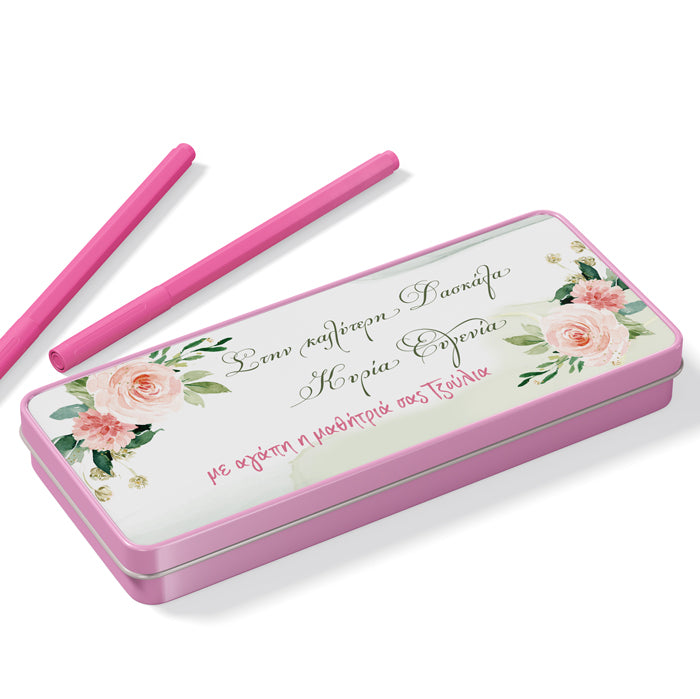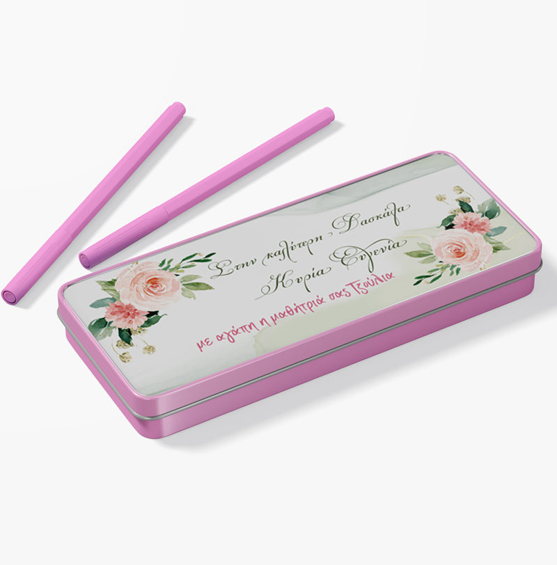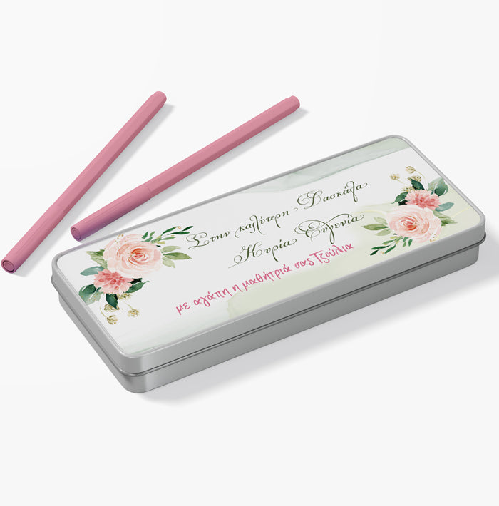 Μεταλλική κασετίνα με σχέδιο Φλοράλ και τυπωμένο μήνυμα, για να την χαρίσεις στην αγαπημένη σου δασκάλα!