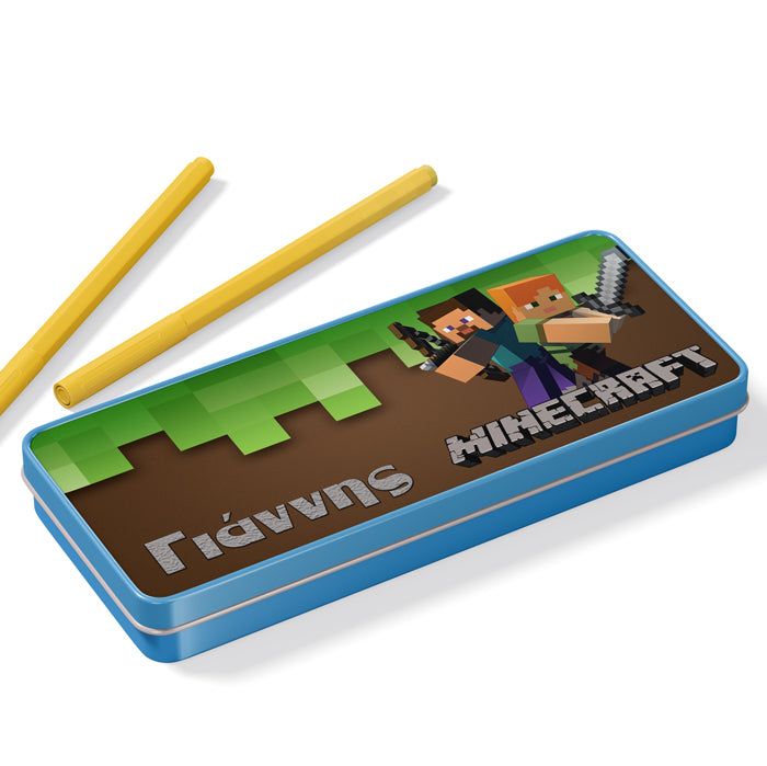 Μεταλλική γαλάζια κασετίνα με σχέδιο Minecraft και τυπωμένο το όνομα! Βάλε σ'αυτή τα αγαπημένα σου σχολικά αντικείμενα ή δώρισέ την σε μια φίλη σου και ξεχωρίστε στην τάξη!