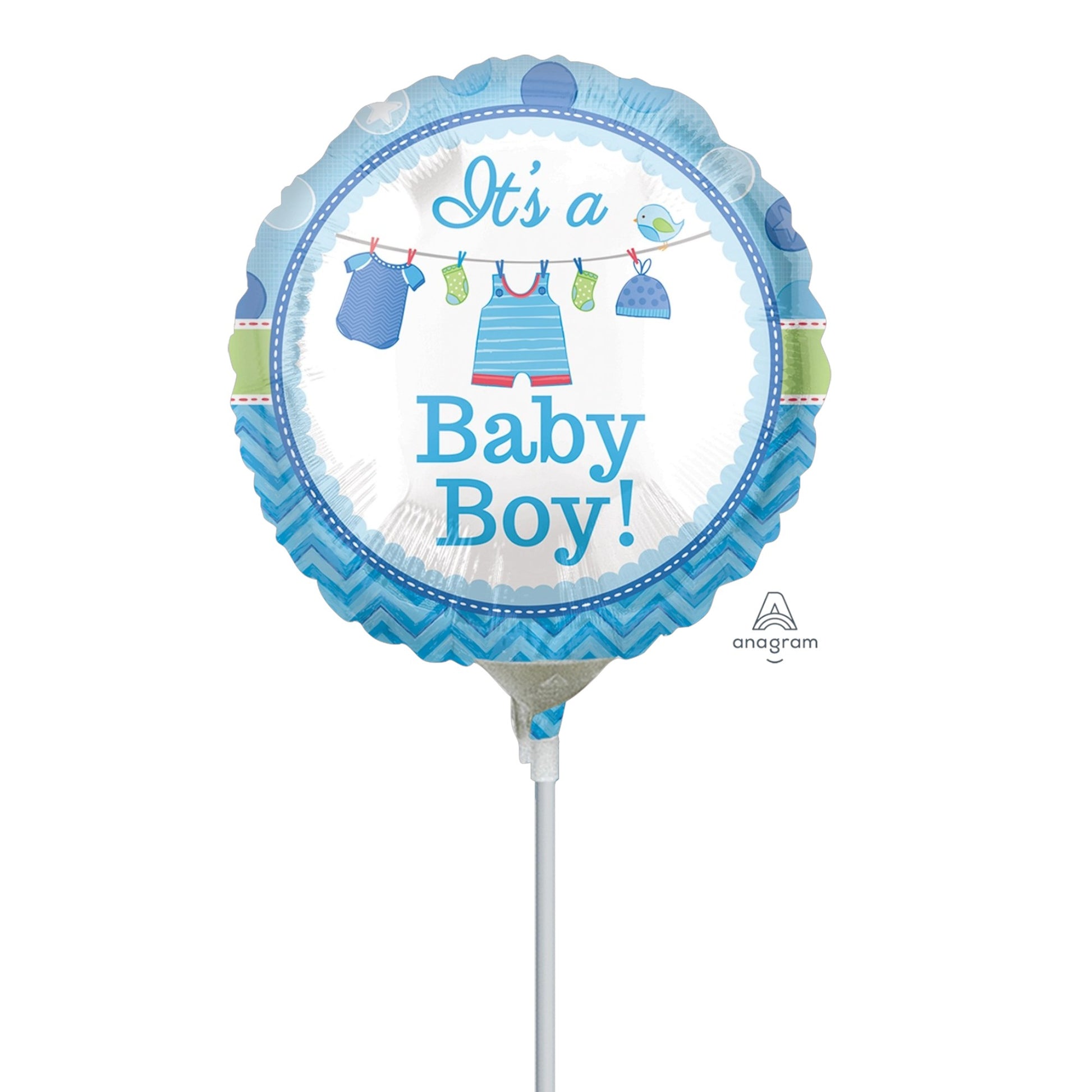 Ένα γλυκό και χαριτωμένο mini μπαλόνι που απεικονίζει μπουγάδα με βρεφικά ρουχαλάκια και το μήνυμα "Baby Boy"