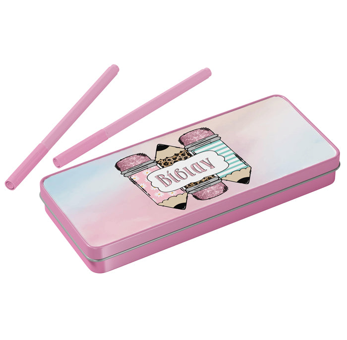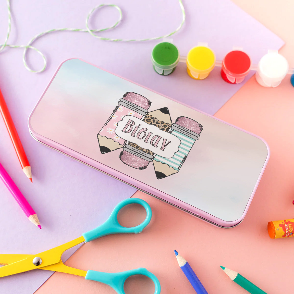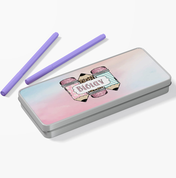Μεταλλική κασετίνα με σχέδιο Μολύβια και τυπωμένο το όνομα! Βάλε σ'αυτή τα αγαπημένα σου σχολικά αντικείμενα ή δώρισέ την σε μια φίλη σου και ξεχωρίστε στην τάξη!
