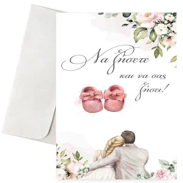 Ευχετήρια κάρτα για να ευχηθείς στους νεόνυμφους να ζήσουν αυτοί και το μωράκι τους και να τους συγκινήσεις με τα όμορφά σου λόγια για την ξεχωριστή αυτή μέρα του γάμου τους και της βάπτισης του μωρού τους!