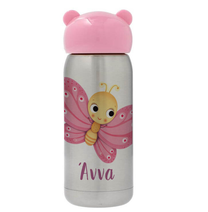 Προσωποποιημένο παγούρι με χαριτωμένη Πεταλουδίτσα. Τα μικρά αυτάκια στο καπάκι που μοιάζουν με αρκουδάκι, δίνουν στο μπουκάλι μια παιχνιδιάρικη εμφάνιση. Το ιδανικό παγούρι με όνομα και σχέδιο, που θα κάνουν το παιδί σας να μην χάσει ξανά το παγούρι του!