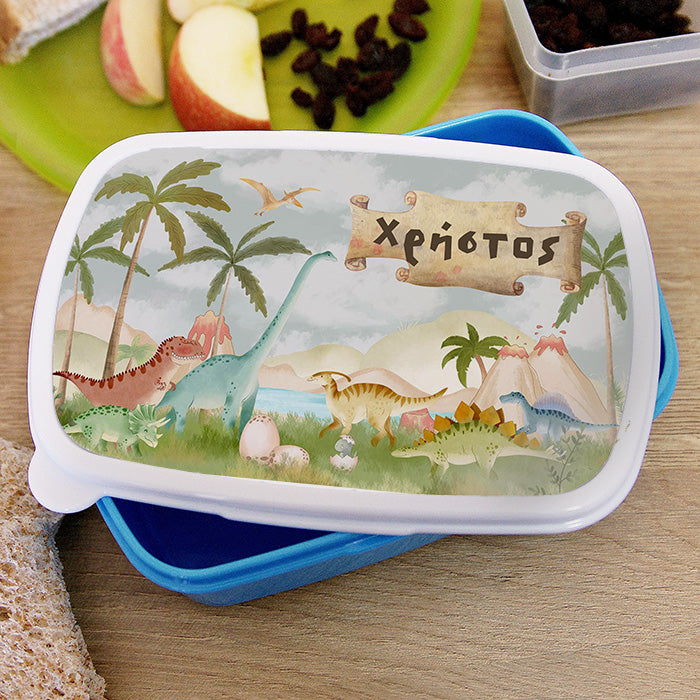 Παιδικό δοχείο φαγητού με δεινοσαυράκια και εκτυπωμένο το όνομα του μικρού σας ώστε να το ξεχωρίζει στο σχολείο!