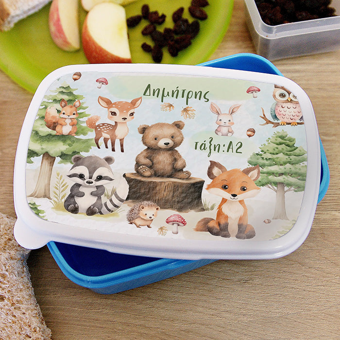 Παιδικό δοχείο φαγητού ζωάκια του δάσους και εκτυπωμένο το όνομα του μικρού σας ώστε να το ξεχωρίζει στο σχολείο!
