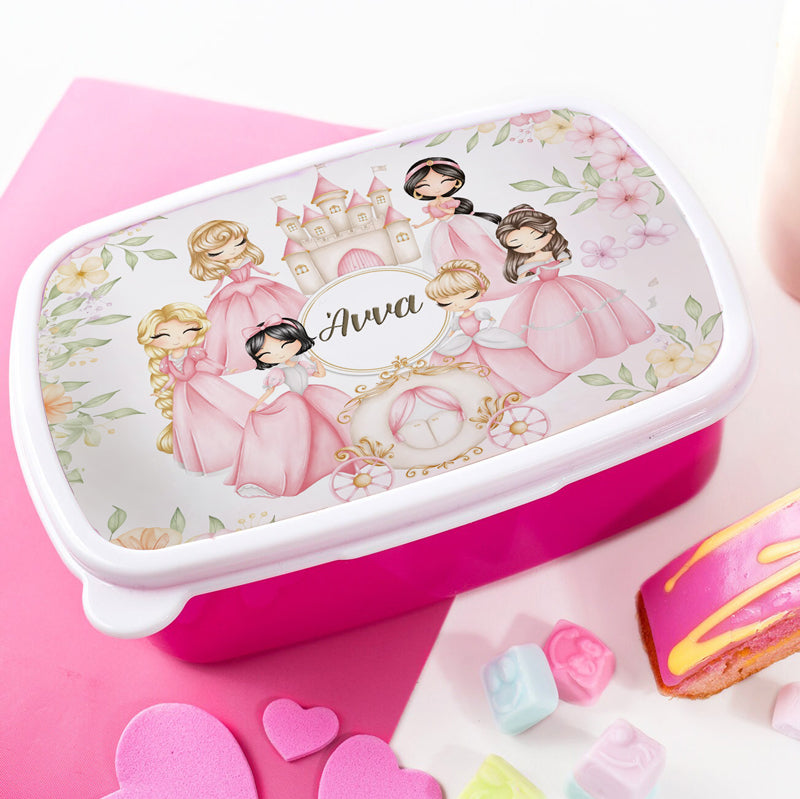 Παιδικό δοχείο φαγητού με τις πριγκίπισσες και εκτυπωμένο το όνομα της μικρής σας ώστε να το ξεχωρίζει στο σχολείο!