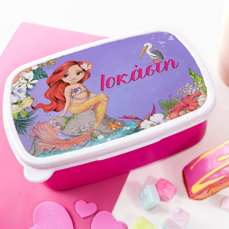 Παιδικό δοχείο φαγητού με την γοργόνα και εκτυπωμένο όνομα της μικρής σας ώστε να το ξεχωρίζει στο σχολείο!