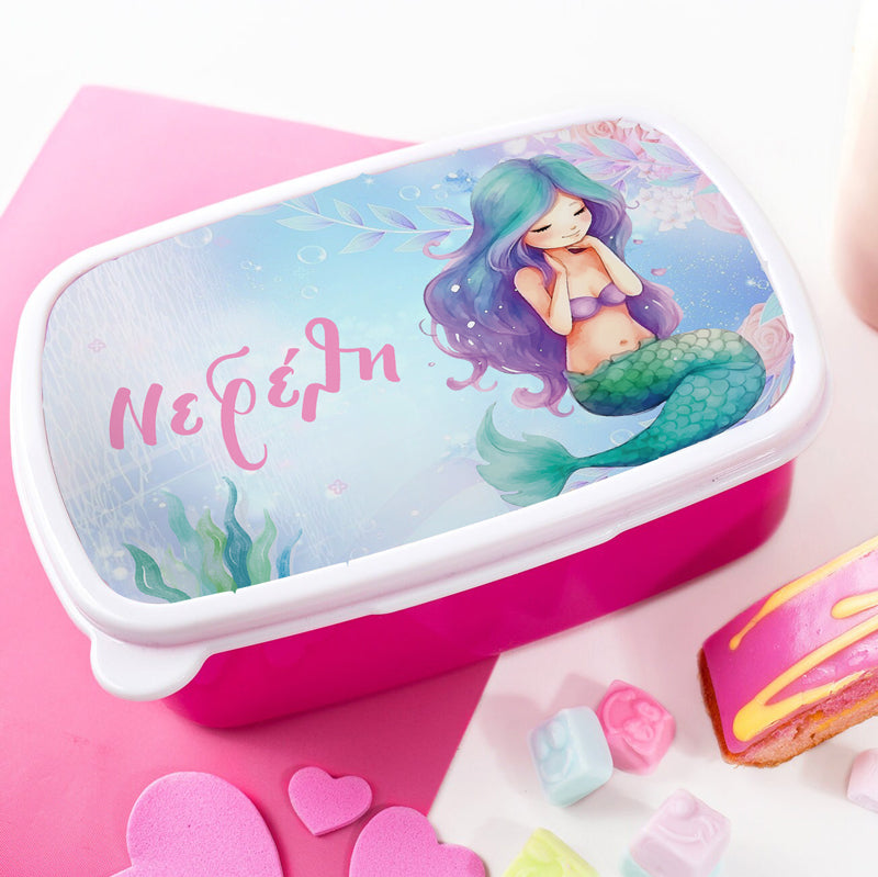 Παιδικό δοχείο φαγητού μικρή γοργόνα με εκτυπωμένο όνομα της μικρής σας ώστε να το ξεχωρίζει στο σχολείο!