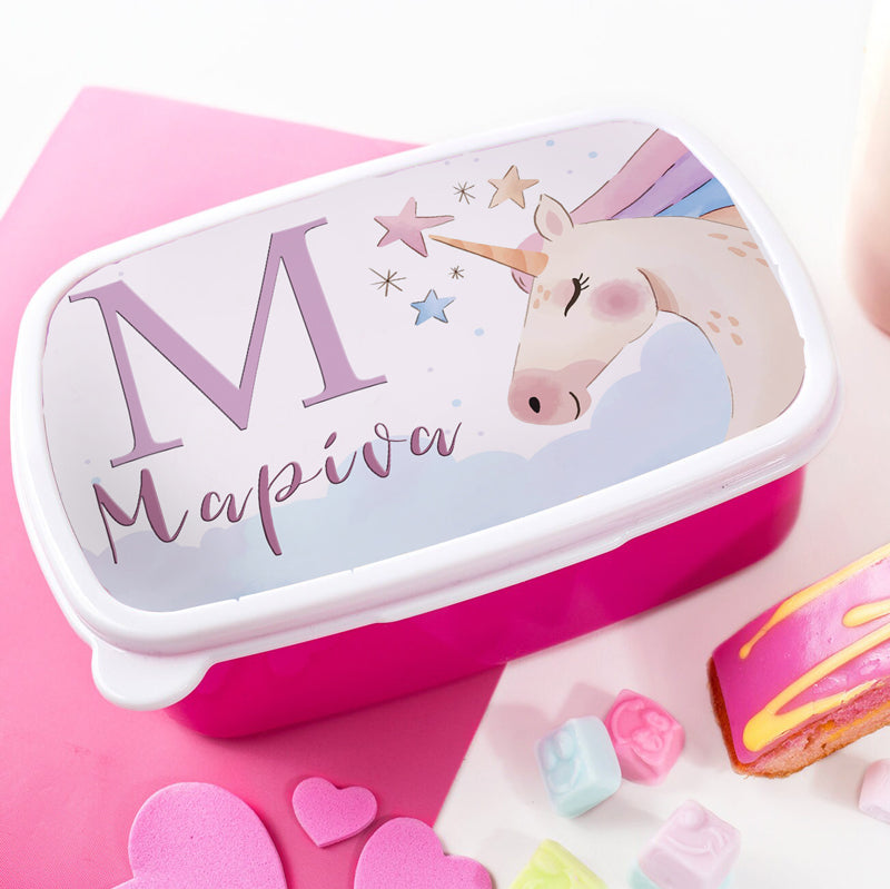 Παιδικό δοχείο φαγητού Μονόκερος με εκτυπωμένο όνομα της μικρής σας ώστε να το ξεχωρίζει στο σχολείο!