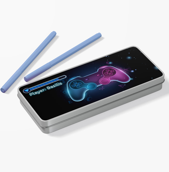 Μεταλλική κασετίνα με σχέδιο Gaming και τυπωμένο το όνομα! Βάλε σ'αυτή τα αγαπημένα σου σχολικά αντικείμενα ή δώρισέ την σε μια φίλη σου και ξεχωρίστε στην τάξη!