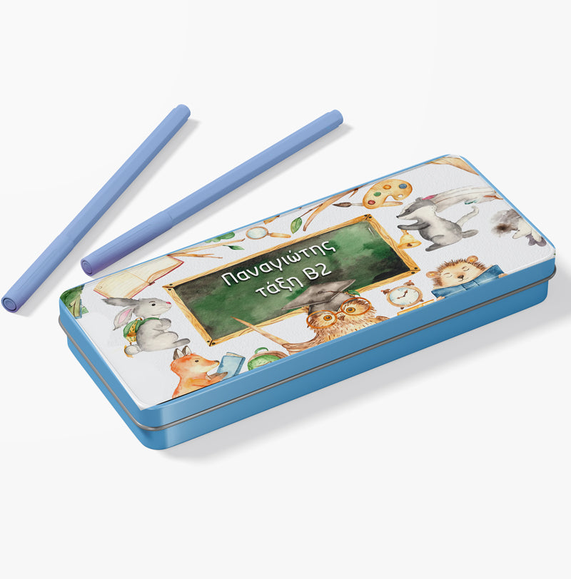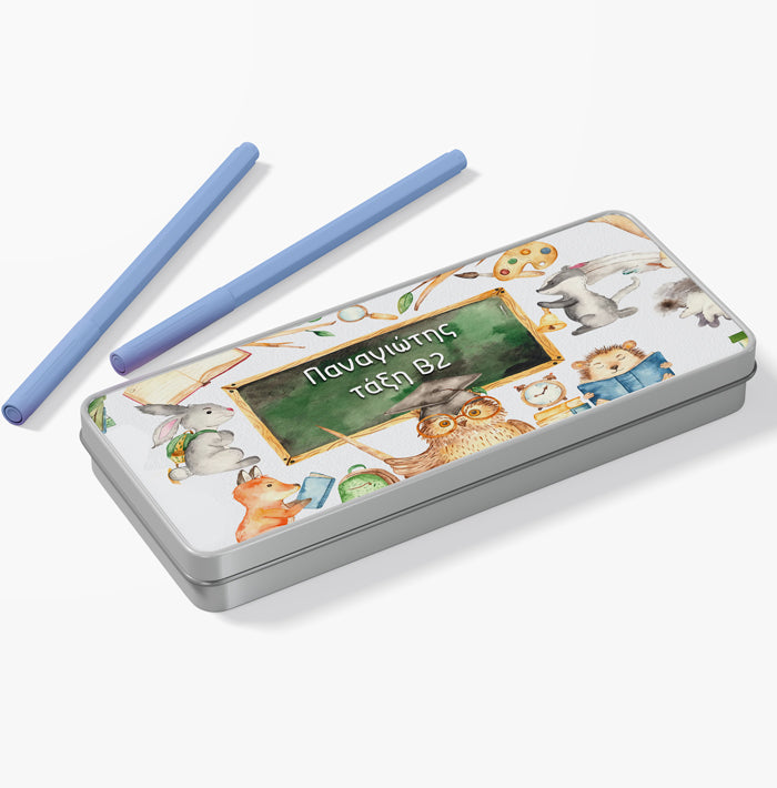 Μεταλλική κασετίνα με σχέδιο ζωάκια του δάσους και τυπωμένο το όνομα! Βάλε σ'αυτή τα αγαπημένα σου σχολικά αντικείμενα ή δώρισέ την σε μια φίλη σου και ξεχωρίστε στην τάξη!