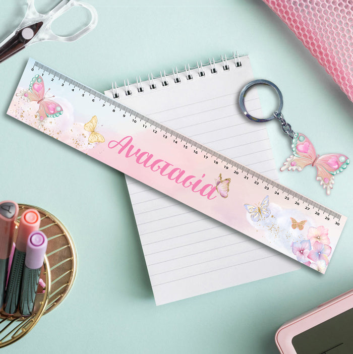 Προσωποποιημένος χάρακας Πεταλούδα με το όνομα και ασορτί μπρελόκ! To πιο τέλειο αξεσουάρ για το σχολείο ή το φροντιστήριο!