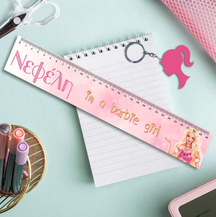 Προσωποποιημένος χάρακας Barbie με το όνομα και ασορτί μπρελόκ! To πιο τέλειο αξεσουάρ για το σχολείο ή το φροντιστήριο!