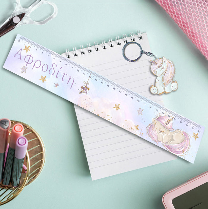 Προσωποποιημένος χάρακας Μονόκερος με το όνομα και ασορτί μπρελόκ! To πιο τέλειο αξεσουάρ για το σχολείο ή το φροντιστήριο!