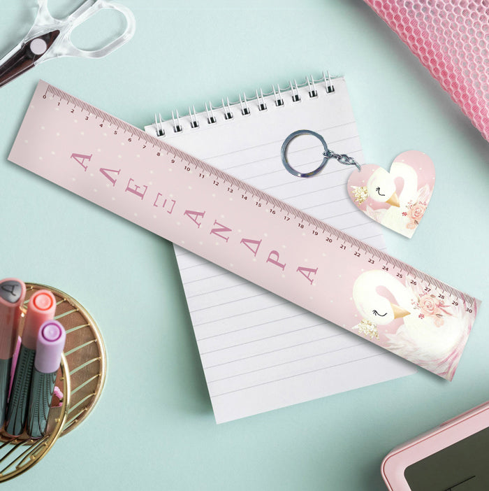 Προσωποποιημένος χάρακας Κύκνος με το όνομα και ασορτί μπρελόκ! To πιο τέλειο αξεσουάρ για το σχολείο ή το φροντιστήριο!