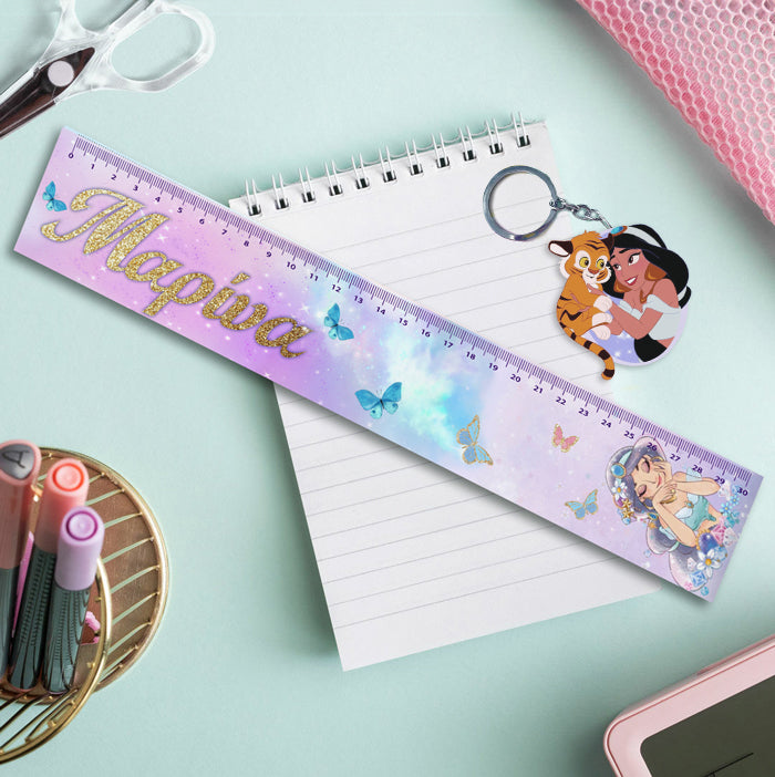 Προσωποποιημένος χάρακας Γιασμίν με το όνομα και ασορτί μπρελόκ! To πιο τέλειο αξεσουάρ για το σχολείο ή το φροντιστήριο!