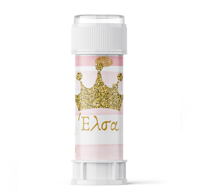 Προσωποποιημένες σαπουνόφουσκες με χάρτινο περιτύλιγμα και θέμα Κορώνα, για να χαρίσετε ως δωράκι στους μικρούς καλεσμένους.