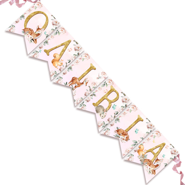 Διακοσμητικά σημαιάκια με το όνομα του παιδιού και θέμα το Ελαφάκι σε φλοράλ!