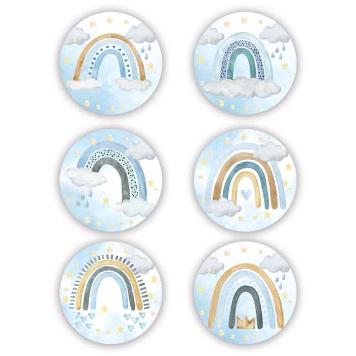 Κονκάρδες με το Ουράνιο Τόξο σε αγορίστικες αποχρώσεις, ιδανικές για ενθύμιο δωράκι στους καλεσμένους της Βάπτισης!