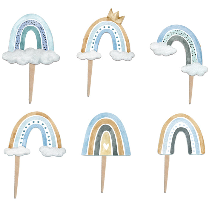 Οδοντογλυφίδες για να στολίσετε τα ζαχαρωτά και τα cupcake του μπουφέ με θέμα το Ουράνιο Τόξο σε αγορίστικες αποχρώσεις!