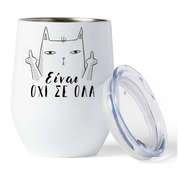 Χιουμοριστική κούπα θερμός με σχέδιο νευριασμένη γατούλα να λέει 'όχι σε όλα' πριν πιει την πρώτη γουλιά καφέ!