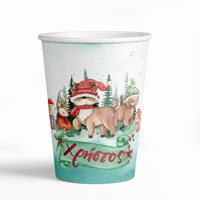 Χριστουγεννιάτικα Ποτηράκια με το όνομα του μωρού σας και θέμα Woodland σε όμορφες αποχρώσεις, για να κεράσετε τους καλεσμένους σας στο τραπέζι της βάπτισης!
