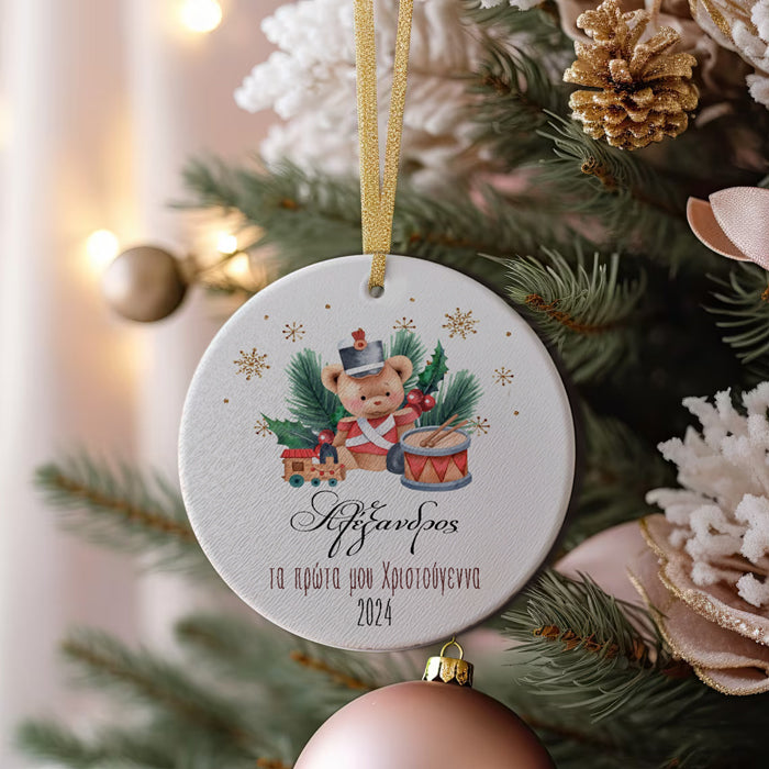 Χριστουγεννιάτικο στολίδι - τα πρώτα Χριστούγεννα με σχέδιο αρκουδάκι τυμπανιστή, για να στολίσετε με τον πιο γλυκό τρόπο το φετινό δέντρο!