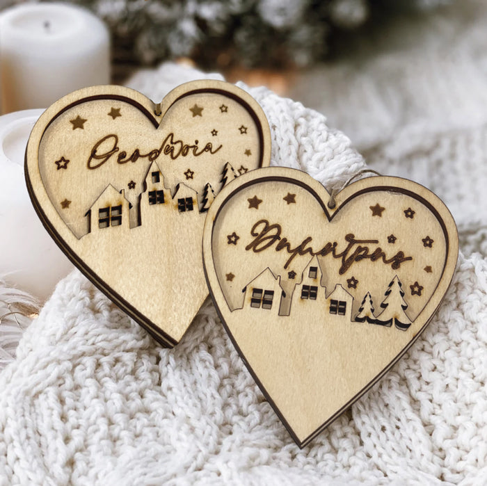Περιλαμβάνει 2 ξύλινες καρδούλες - στολίδια χαραγμένες με λέιζερ, φωτάκια LED