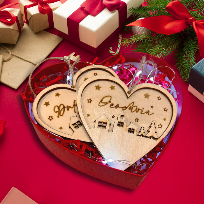 Κουτί καρδιά με στολίδια και φωτάκια LED στο εσωτερικό, για να τα προσφέρετε στο άλλο σας μισό και να στολίσετε μαζί το Χριστουγεννιάτικο δέντρο με τον πιο γλυκό τρόπο!