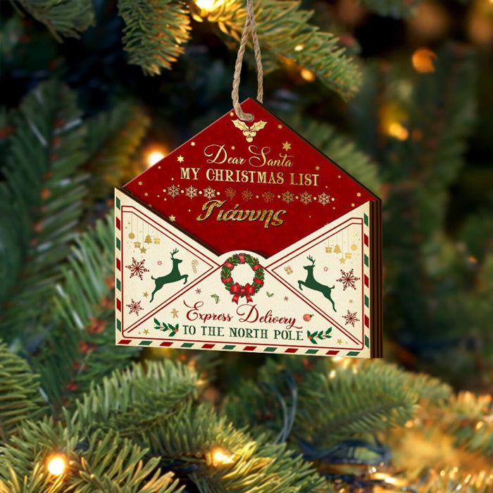 Χριστουγεννιάτικο στολίδι με όνομα και θήκη για γράμμα προς τον Αϊ-Βασίλη! Γράψε το γράμμα που θες να στείλεις στο Άγιο και τοποθέτησέ το στο Χριστουγεννιάτικο δέντρο. Αν ήσουν καλό παιδί όλη τη χρονιά, η επιθυμία σου θα βγει αληθινή!