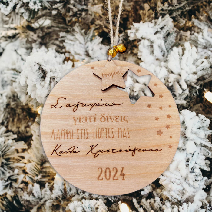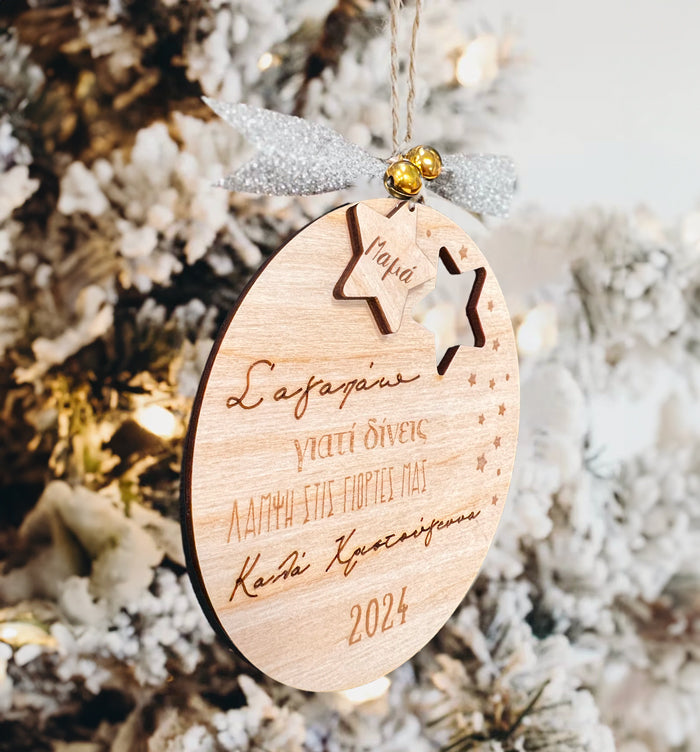Χριστουγεννιάτικο στολίδι με μήνυμα για να το χαρίσεις στο αγαπημένο σου πρόσωπο και να του δείξεις πόσο το νοιάζεσαι! Στο αστεράκι θα τυπωθεί το όνομα του παραλήπτη!
