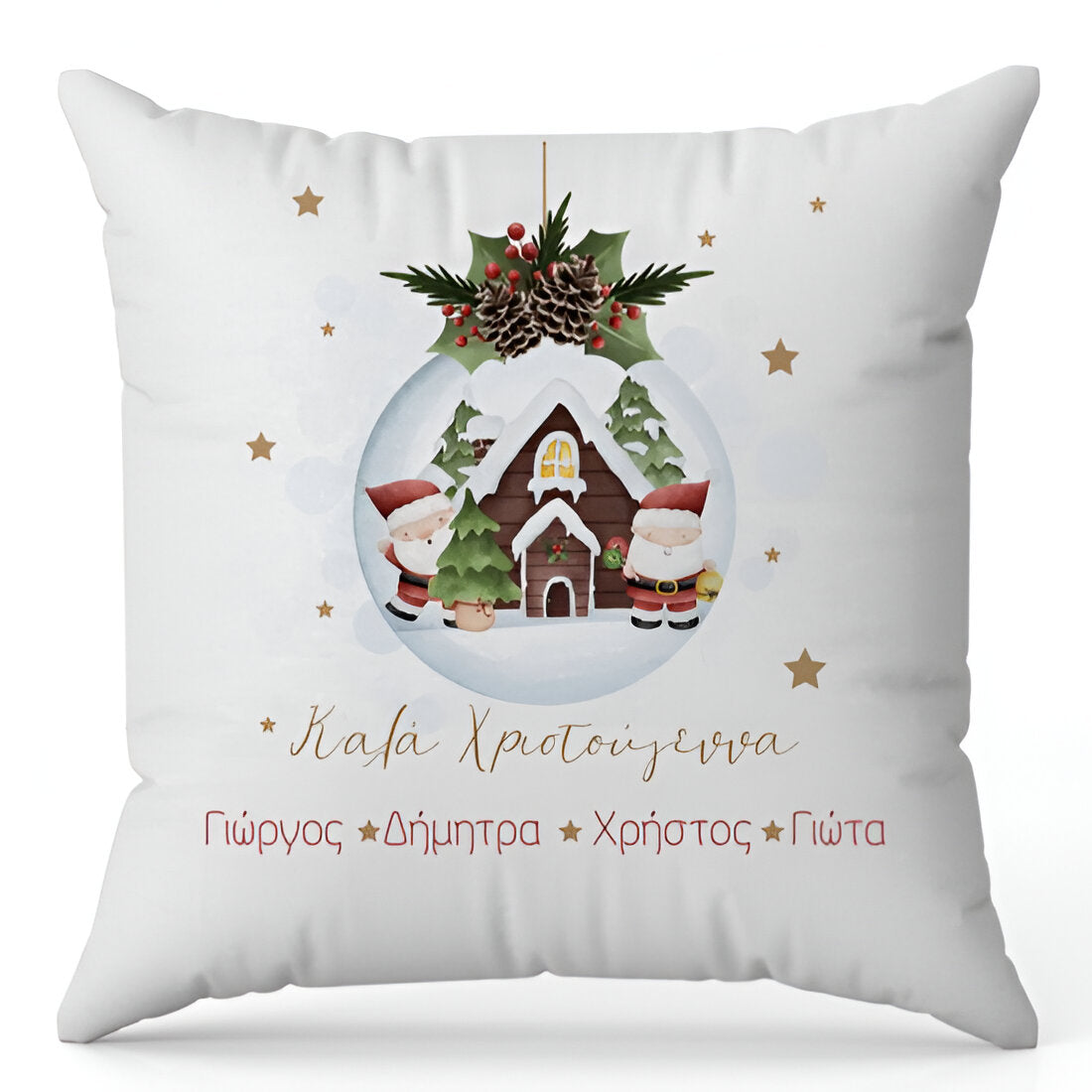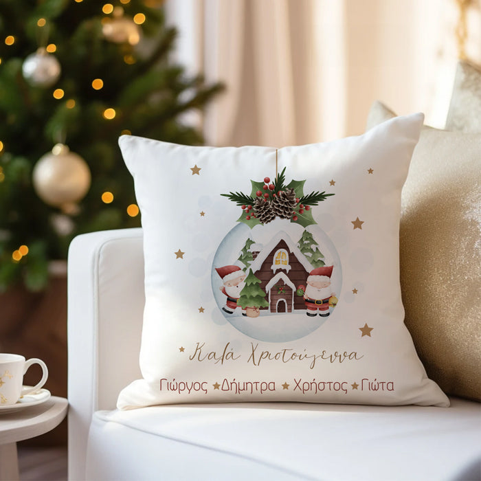 Μαξιλάρι με σχέδιο Χριστουγεννιάτικο στολίδι και τυπωμένα τα ονόματα όλης της οικογένειας, για να το προσφέρεις ως δώρο ή να διακοσμήσεις με αυτό το χώρο σου την περίοδο των γιορτών!