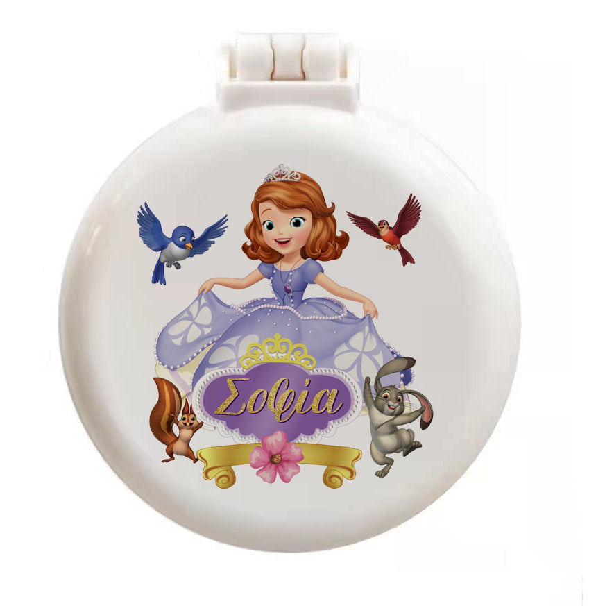 Προσωποποιημένο καθρεφτάκι με χτενάκι και θέμα Πριγκίπισσα Σοφία. Το απόλυτο δωράκι για να χαρίσεις στην κάθε καλεσμένη του πάρτυ, με το όνομα της!