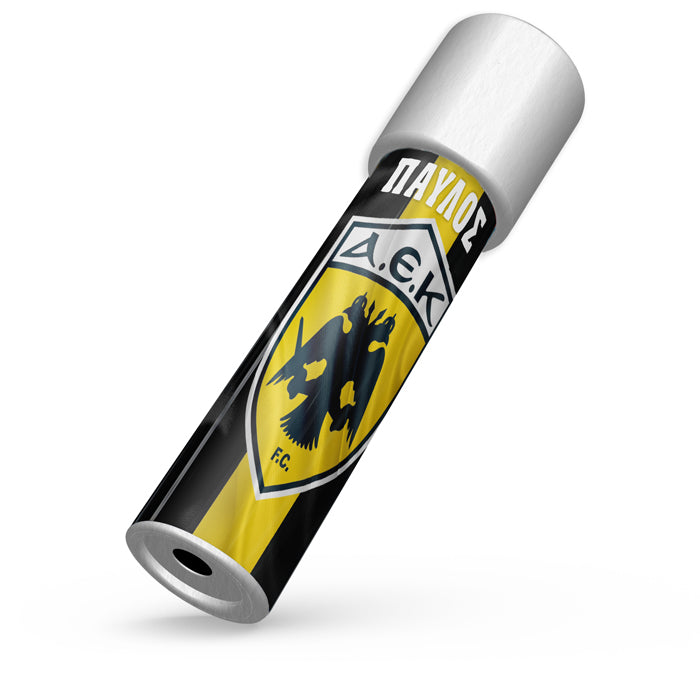 Καλειδοσκόπιο με θέμα την αγαπημένη σου ομάδα ΑΕΚ, που το περιστρέφεις και αποκαλύπτονται αμέτρητα σχέδια! Ιδανικό για δώρο στους μικρούς καλεσμένους του πάρτυ, που θα τους μαγνητίσει και θα τους οδηγήσει σε ένα ατελείωτο παιχνίδι με τις αντανακλάσεις του φωτός.