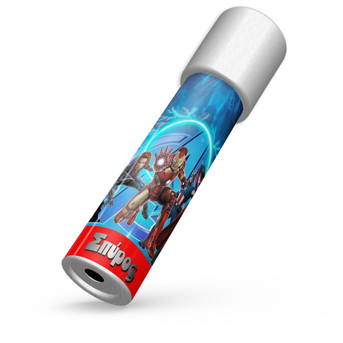 Καλειδοσκόπιο με θέμα Avengers, που το περιστρέφεις και αποκαλύπτονται αμέτρητα σχέδια! Ιδανικό για δώρο στους μικρούς καλεσμένους του πάρτυ, που θα τους μαγνητίσει και θα τους οδηγήσει σε ένα ατελείωτο παιχνίδι με τις αντανακλάσεις του φωτός.