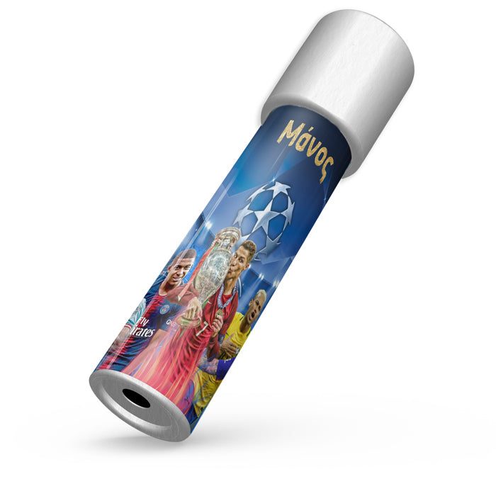 Καλειδοσκόπιο με θέμα Ποδοσφαιριστές, που το περιστρέφεις και αποκαλύπτονται αμέτρητα σχέδια! Ιδανικό για δώρο στους μικρούς καλεσμένους του πάρτυ, που θα τους μαγνητίσει και θα τους οδηγήσει σε ένα ατελείωτο παιχνίδι με τις αντανακλάσεις του φωτός.