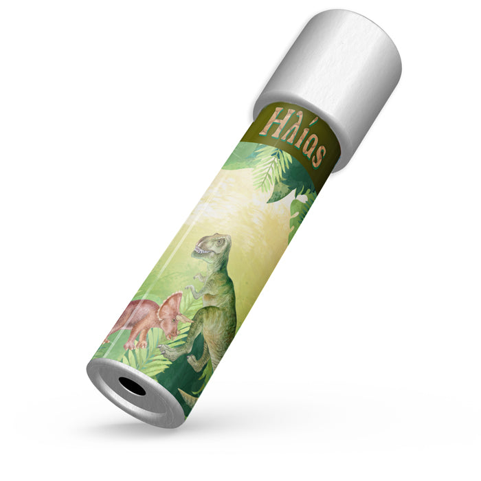 Καλειδοσκόπιο με θέμα Δεινόσαυροι, που το περιστρέφεις και αποκαλύπτονται αμέτρητα σχέδια! Ιδανικό για δώρο στους μικρούς καλεσμένους του πάρτυ, που θα τους μαγνητίσει και θα τους οδηγήσει σε ένα ατελείωτο παιχνίδι με τις αντανακλάσεις του φωτός.