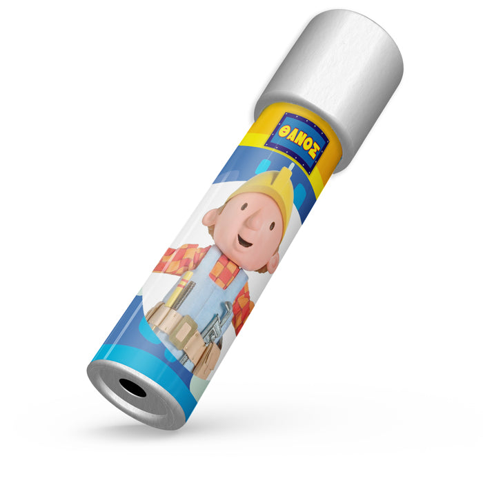 Καλειδοσκόπιο με θέμα Μπομπ ο Μάστορας, που το περιστρέφεις και αποκαλύπτονται αμέτρητα σχέδια! Ιδανικό για δώρο στους μικρούς καλεσμένους του πάρτυ, που θα τους μαγνητίσει και θα τους οδηγήσει σε ένα ατελείωτο παιχνίδι με τις αντανακλάσεις του φωτός.