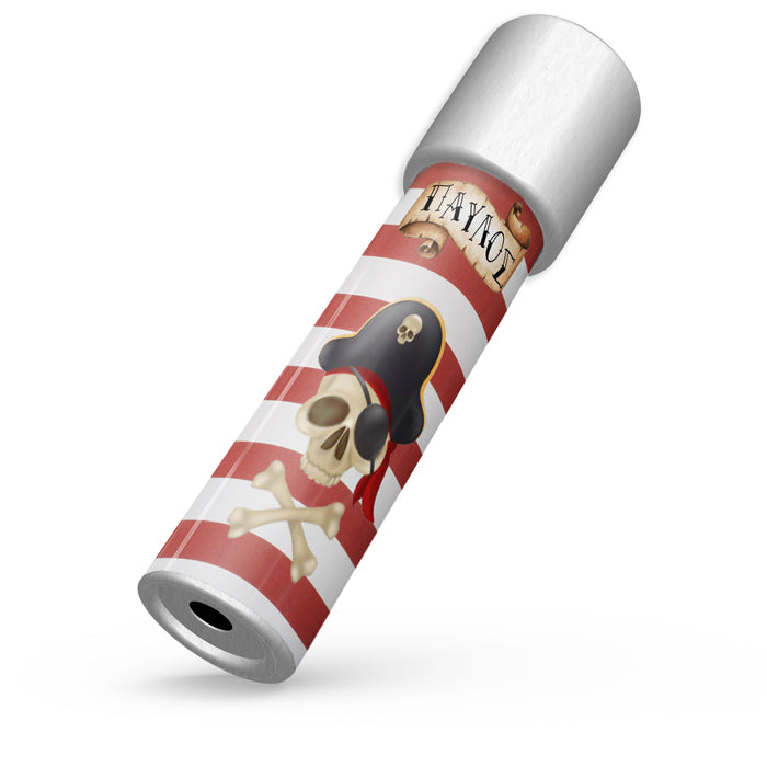 Καλειδοσκόπιο με θέμα Πειρατές, που το περιστρέφεις και αποκαλύπτονται αμέτρητα σχέδια! Ιδανικό για δώρο στους μικρούς καλεσμένους του πάρτυ, που θα τους μαγνητίσει και θα τους οδηγήσει σε ένα ατελείωτο παιχνίδι με τις αντανακλάσεις του φωτός.