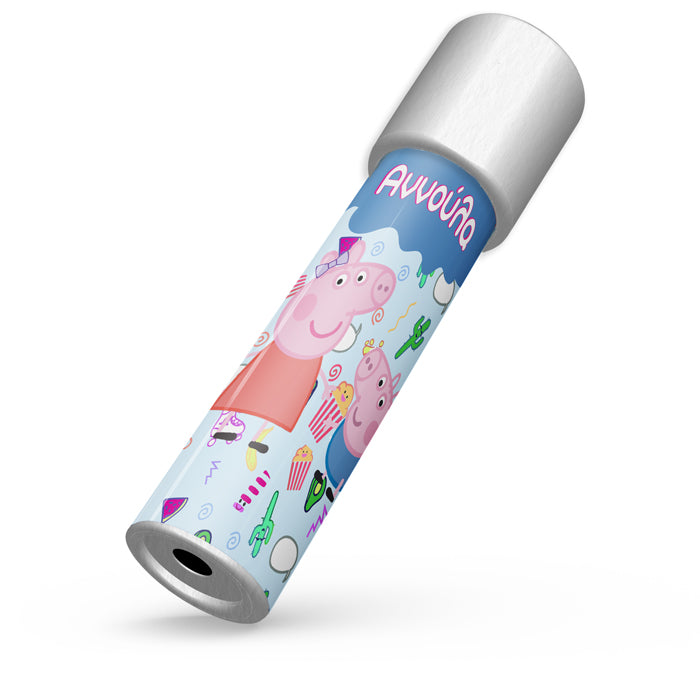 Καλειδοσκόπιο με θέμα Πέππα το Γουρουνάκι, που το περιστρέφεις και αποκαλύπτονται αμέτρητα σχέδια! Ιδανικό για δώρο στους μικρούς καλεσμένους του πάρτυ, που θα τους μαγνητίσει και θα τους οδηγήσει σε ένα ατελείωτο παιχνίδι με τις αντανακλάσεις του φωτός.