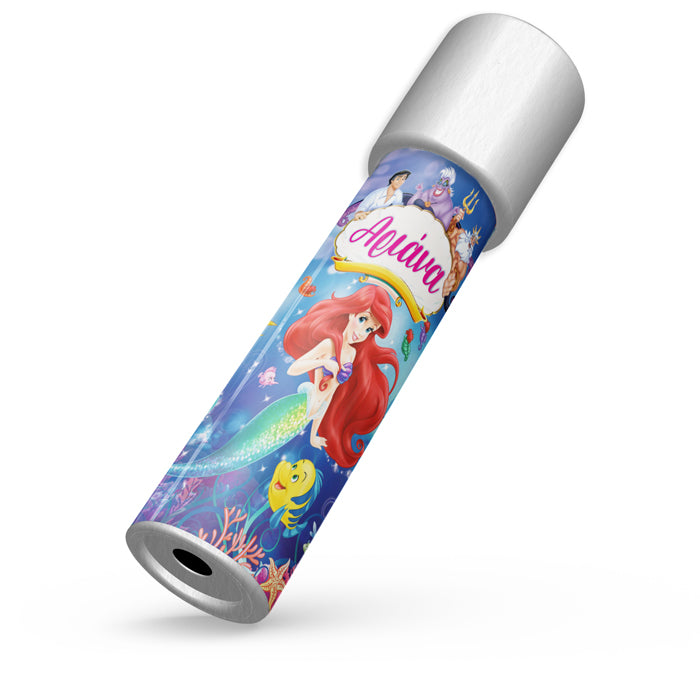 Καλειδοσκόπιο με θέμα Γοργόνα Άριελ, που το περιστρέφεις και αποκαλύπτονται αμέτρητα σχέδια! Ιδανικό για δώρο στους μικρούς καλεσμένους του πάρτυ, που θα τους μαγνητίσει και θα τους οδηγήσει σε ένα ατελείωτο παιχνίδι με τις αντανακλάσεις του φωτός.