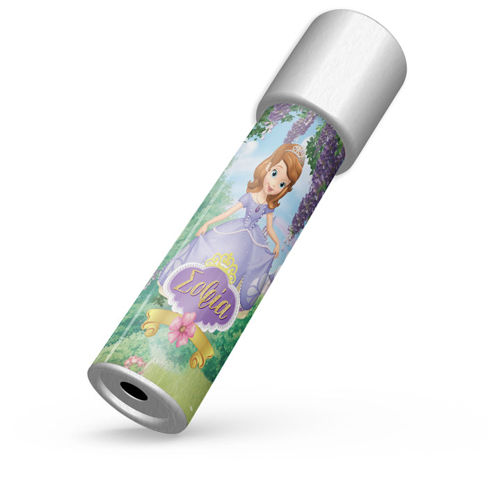 Καλειδοσκόπιο με θέμα Πριγκίπισσα Σοφία, που το περιστρέφεις και αποκαλύπτονται αμέτρητα σχέδια! Ιδανικό για δώρο στους μικρούς καλεσμένους του πάρτυ, που θα τους μαγνητίσει και θα τους οδηγήσει σε ένα ατελείωτο παιχνίδι με τις αντανακλάσεις του φωτός.